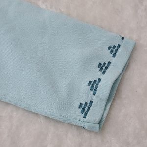 Made with a delicate pastel blue hue, this vintage piece features a button-down design, floral embroidery design, and 3/4 length sleeves.
