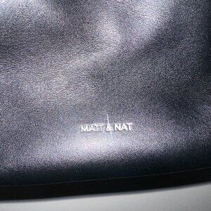 This Matt & Nat black backpack features an adjustable shoulder strap and top zipper closure. Front zipper pocket. Small zipper pocket on back for security. Fits a 13” computer. The interior includes a zipper pocket, smartphone pocket and a logo-embossed Loom patch. It is made of 100% recycled nylon lining and 100% Vegan - Animal & Cruelty Free. Dimensions: 11.5” x 15.5” x 5” Adjustable Shoulder Strap: 26”-33.5” Handle Drop: 2”