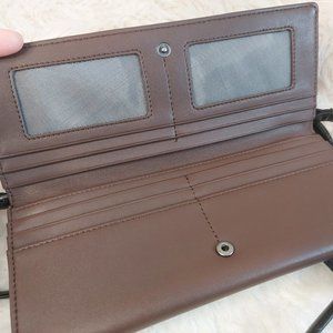 Check out this Mat & Nat Women's Brown Long Wallet Crossbody Bag in very great pre-owned condition, minor wear on the edge but no rip no stains on it, the lining also no rip or stains on it.