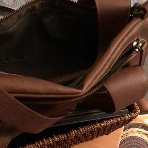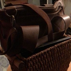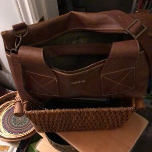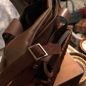 Made of chocolate brown vegan leather, can be altered by strap to change style of bag, little to no sign of use or wear.