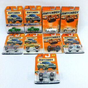 Matchbox diecast pickup trucks lot of 9. Cards may have flaws such as soft corners or creases, please review photos closely.