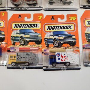 Lot of 10 1997-1999 Matchbox work trucks all new on cards. Cards may have flaws or damage such as corner wear and creasing, please review photos closely.