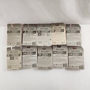 Lot of 10 1997-1999 Matchbox work trucks all new on cards. Cards may have flaws or damage such as corner wear and creasing, please review photos closely.