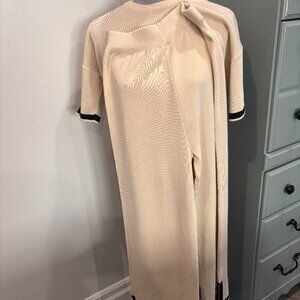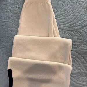 Two piece casual knit set. Side slit detail. Off- white with black trim. Stretch -pull on pants and top . Note- pants are quite long.