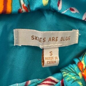 Size small, matching Hawaiian skirt and orange crocheted cardigan.