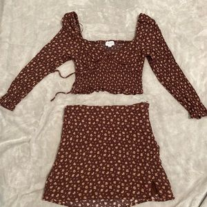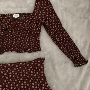 Beautiful medium matching cropped top with matching mini skirt only worn once but very beautiful for summer that’s finally here yayhhhh brown long sleeve very cool super comfortable small-too medium