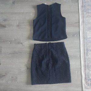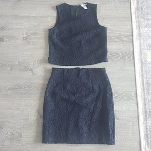 Very flattering crop top with matching skirt. Crop is just long enough that it does not show your stomach. Good quality material. Back of top has lace. Worn twice.