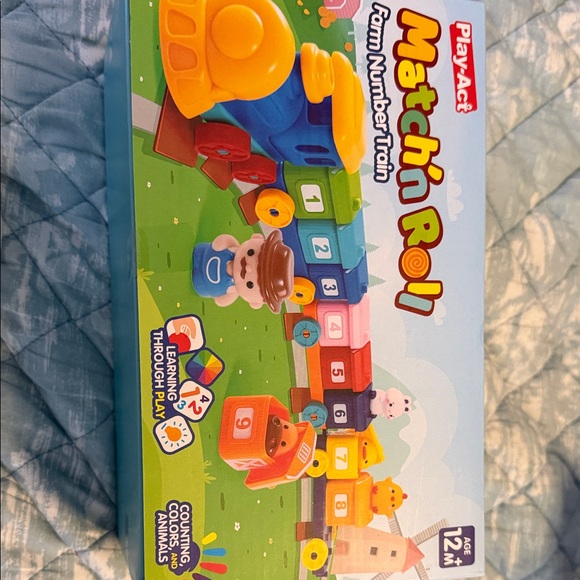Introduce your child to numbers with the Match'n Roll Farm Number Train. This colorful toy features vibrant blue, yellow, and red elements, making learning an exciting adventure.