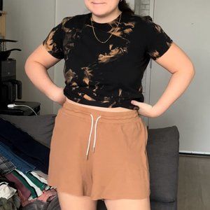 Super comfortable and flattering sweat shorts. Flowy on the legs and cinched at the waist. In like-new very lightly worn condition.