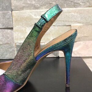 Pointed-toe slip-on slingback pumps with goring for enhanced fit