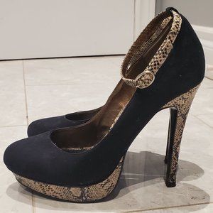 Material Girl Platform Heels, Faux Suede & Snakeskin, Size 38 (fits size 7)