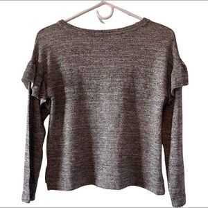 NWT Material Girl marled grey sweater. Drop shoulder with ruffle. This cute, lightweight sweater deserves to be worn and it’s just not my daughter’s style anymore.