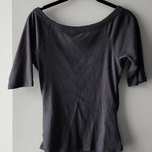 Dark grey maternity shirt w/ 3/4 sleeves, in excellent condition. Material is stretchy cotton blend, making it easy to wear throughout your whole pregnancy!