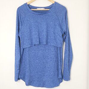 Maternity Blue Breastfeeding Long Sleeves Pullover Nursing Top Opening Large