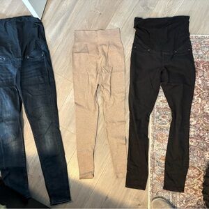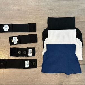 Set of Belly Belt waistband extenders in black, white & navy. Old Navy Maternity lavender top (XS). H&M maternity pants ranging in size (2-M)