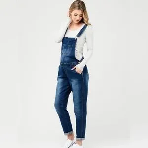 Update your weekend rotation with our pregnancy friendly Denim Overalls. Featuring a vintage wash and bronze trims, these denim overalls layer effortlessly over any top and make putting together an outfit, easy!