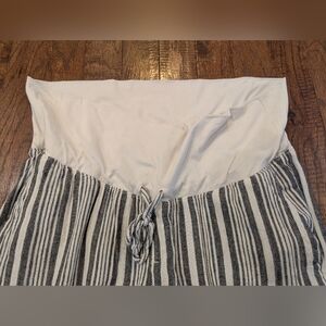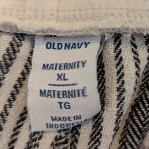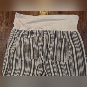 Maternity Rollover-Waist Black & Ivory Linen-Blend Wide Leg Pants Sz XL.