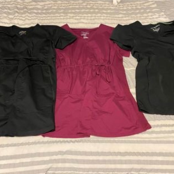 Three Pairs of Maternity Scrubs - all shirts are small, and the two worn pairs of pants are extra small, while the ones with tags are small. ONLY selling as lot