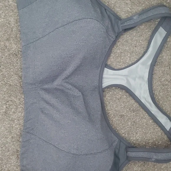 grey maternity bra, bought brand new, never used. padded with adjustable velcro straps for easy access. size 42E fits like a DD. Stretchy, forgiving material.