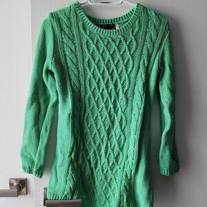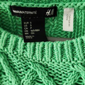 H&M Maternity bright green sweater in excellent condition. Cable knit design on front and back, cotton and acrylic blend. Perfect for summer/fall.