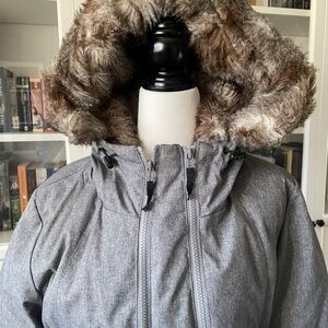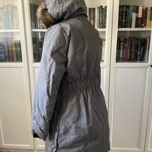 Thyme maternity winter coat with removable panel, elastic waist and side snaps