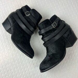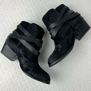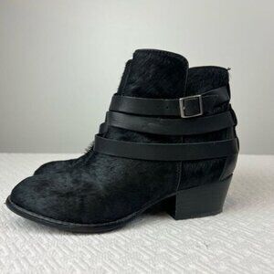 Matiko Boots Womens 6.5 Slip On Buckle Strap Ankle Bootie Black Fur Calf Heels