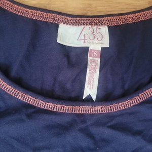 Comfortable stretchy top with button accents on the 3/4 length sleeves. Loose ruffled skirt that will look good over leggings in winter and by itself in the summer.