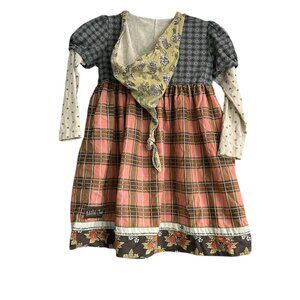 Matilda Jane fieldtrip dress, girls size 8 Matilda Jane, bohemian kids clothing, hippie cottagecore dress, elf hood dress, floral plaid polka dot dress, inspirational quote skirt dress, Matilda Jane boho clothing