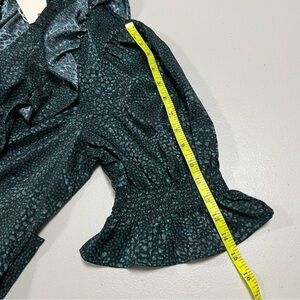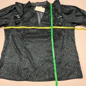 New with tag. Puff sleeve detail. Ruffle shoulde and notch neck. Polyester / Spandex