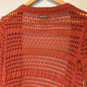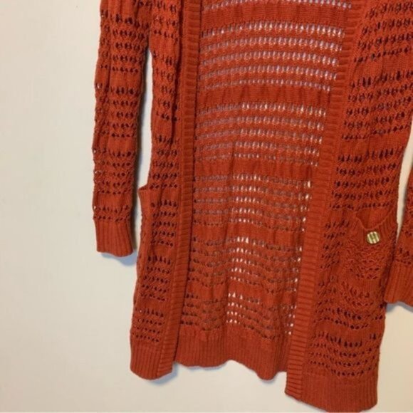 Matilda Jane Henna Secret Fields Cardigan Crochet sz XS Burnt red open front, loose knit