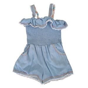 Matilda Jane Picnic in the Park chambray romper blue size 10 girls