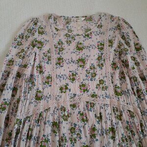 Matilda Jane Women's Size M Pink Floral Like A Lady Bohemian Crochet Tunic Top