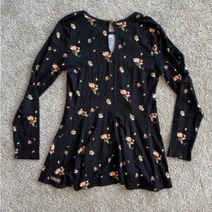 style tags: Matilda Jane, black w floral print, peplum top, moments in time, pep in your step, relaxed fit. Size S