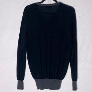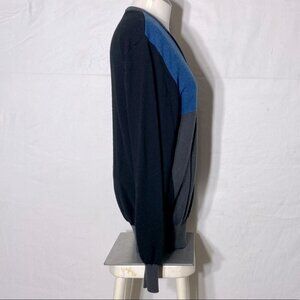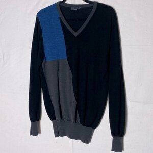 Matinique Black Blue Grey Colour Block Wool Long Sleeve V Neck Sweater M