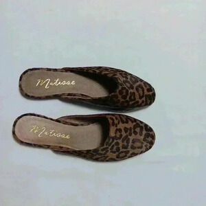 Matisse Leopard print leather Zip It Mules. Ladies size 8.5