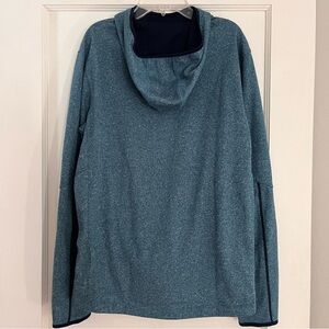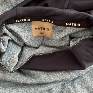 Matrix hoodie with kangaroo pockets. High neck in front. Great condition, smooth outer fleece with light nap fleece inside. Colour is a Teal blue with black piping