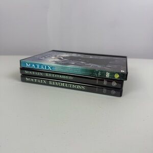 Complete Matrix Trilogy DVD set. Includes Matrix, Matrix Reloaded, and Matrix Revolutions. Perfect for sci-fi fans.