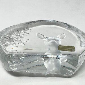 Mats Jonasson Baby Fawn Signed Lead Crystal Swedish Art Glass Paperweight