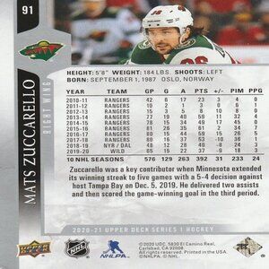 Mats Zuccarello (Wild) 2020/2021 Upper Deck Series 1 Hockey Card - Number 91