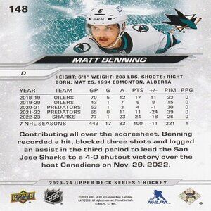 Matt Benning - 2023/2024 Upper Deck Series 1 Hockey Card