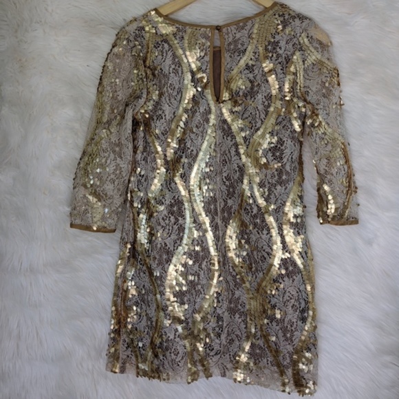 Beautiful 3/4 sleeve matte gold sequin dress.