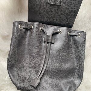 This fashionable backpack is a drawstring closure backpack with a hidden tab under the flap to secure the drawstrings. As well as this there is a hidden back pocket with zipper closure. The interior has a zip pocket and smartphone pocket. Wear it on a casual day out or at a festival. Get your hands on it today and add it to your style!