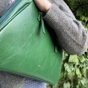 MAY Mat and Natt Kelly vegan faux-leather vegan shoulder bag in a beautiful green color.