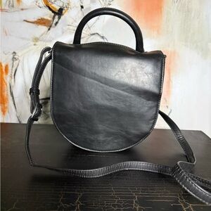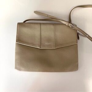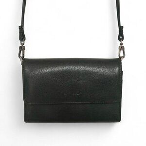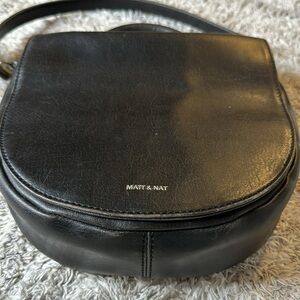 Matt & Nat Black Crossbody Bag, designed with a sleek flap-over style and adjustable strap for versatile wear.