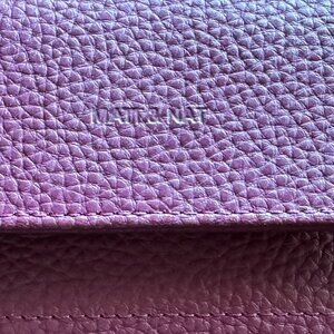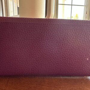 Wallet with flap closure, double gusset construction, center slip pocket and large front zipper pocket. Can fist most smartphones.