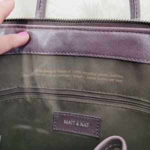 Matt & Nat Purple Dual Handle Satchel Bag Structured Zip Top Recycled Bottles