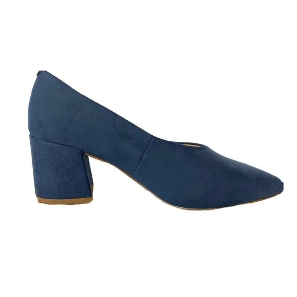 V-cut pointed-toe heeled shoe with a 2.5" flared block heel.