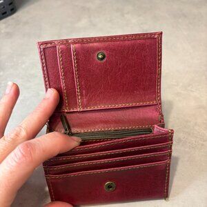 Cute Matt & Nat small deep pink/raspberry-coloured wallet with snap button closure. Inside zip pocket for coins. Vegan leather. Lots of pockets and compartments. Great little every day wallet! Perfect for spring.