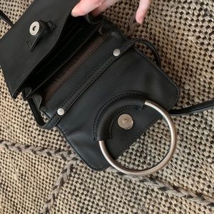 Small black crossbody purse (or clutch, the strap is detachable) from Matt and Nat. Wore a few times then got a phone that no longer fit in it.