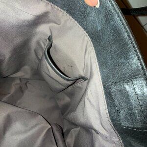 Crafted from the brand’s signature vegan leather, it offers a structured silhouette with clean lines and a timeless black finish.